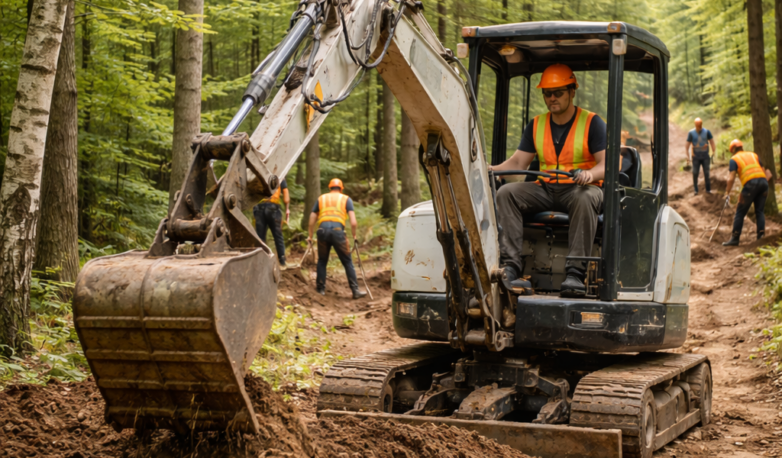 - Opérer la pelle mécanique pour l’aménagement des sentiers (obstacles, bandes de roulement, drainage, enrochements), en respectant les standards de construction et en interprétant les plans et les tracés (flagging);